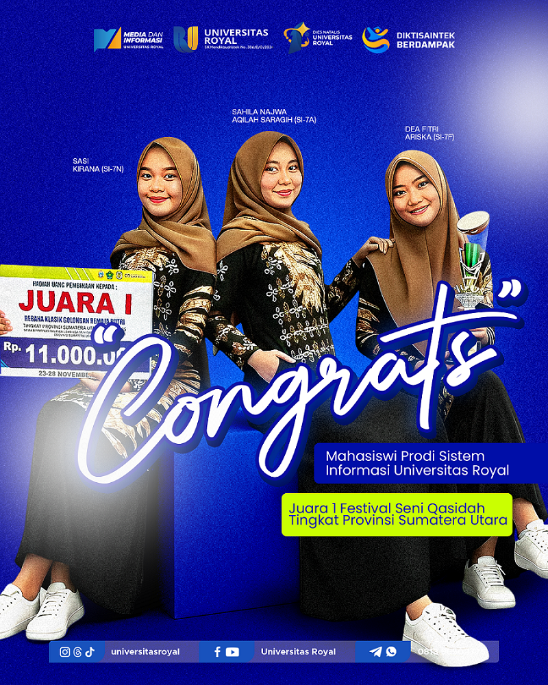 Keberhasilan ini tidak hanya menjadi kebanggaan bagi Program Studi Sistem Informasi, tetapi juga menjadi bukti bahwa mahasiswa Universitas Royal mampu berprestasi tidak hanya di bidang akademik dan teknologi, melainkan juga di bidang seni dan budaya. Capaian ini sekaligus memperkuat komitmen kampus dalam mendukung pengembangan minat, bakat, serta potensi mahasiswa secara holistik.